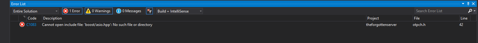 Error C1083 Cannot open include file: 'boost/asio.hpp': No such file or directory theforgottenserver c:\vcpkg\forgottenserver\src\otpch.h 42